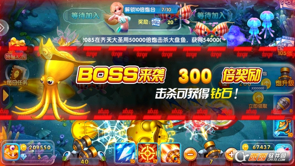 神秘BOSS挑战玩法,定时刷新强力深海BOSS,玩家可单人挑战或多人组队围猎,攻击BOSS弱点可造成高额伤害,成功击杀可获得海量金币与稀有道具。