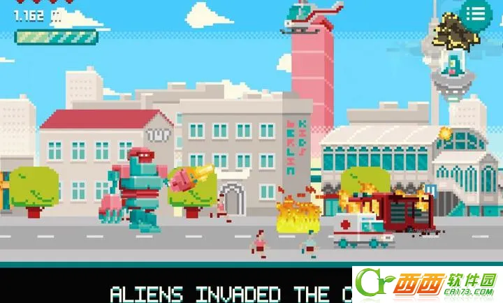 机械巨兽无限货币版是一款复古风格街机动作游戏,采用2D横版射击玩法与8位像素艺术风格。背景设定在未来都市,玩家扮演机械巨兽抵御外星入侵者等邪恶势力。操作简便,两根手指即可上手。游戏有丰富武器系统,三种武器应对不同场景,还能收集道具强化。敌人种类多样,关卡有危机,设有故事和无尽两种模式。