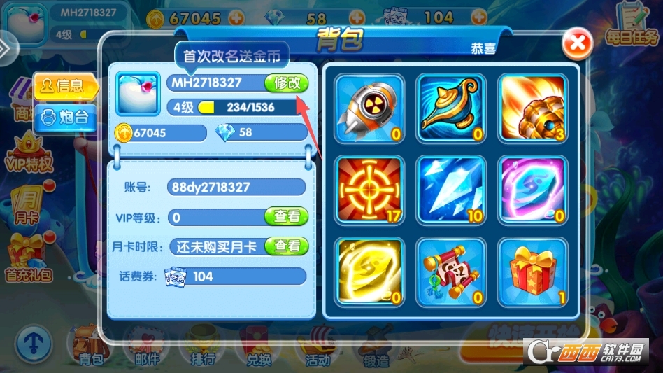 打开来到个人中心,即可点击名字右侧按钮来进行改名