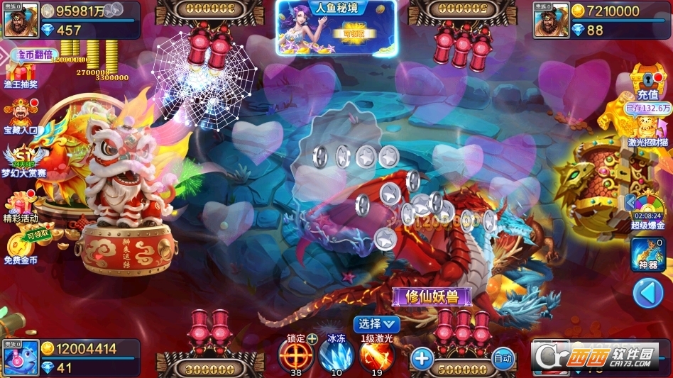 上线福利丰厚,日常任务与活动奖励充足,新手上线就能领取大量金币与道具,轻松解锁高倍炮台,快速体验核心玩法。