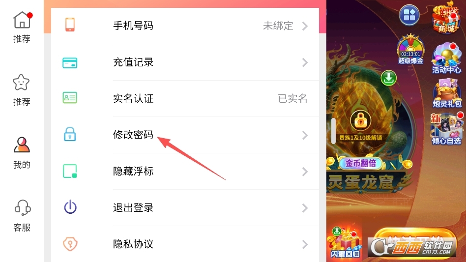 我们点击这个悬浮球就可以打开一个菜单,找到修改账号密码的选项