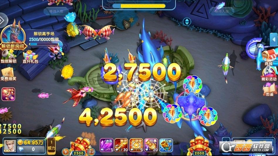 1.玩法多样可自由选择:游戏内置丰富多样的捕鱼玩法,涵盖经典捕鱼、BOSS挑战、限时竞技、深海探险等多种模式,每个玩法都有独特的规则与奖励机制,玩家可根据自身喜好、游玩节奏自由选择,告别单一捕鱼的枯燥感,持续解锁新鲜体验。