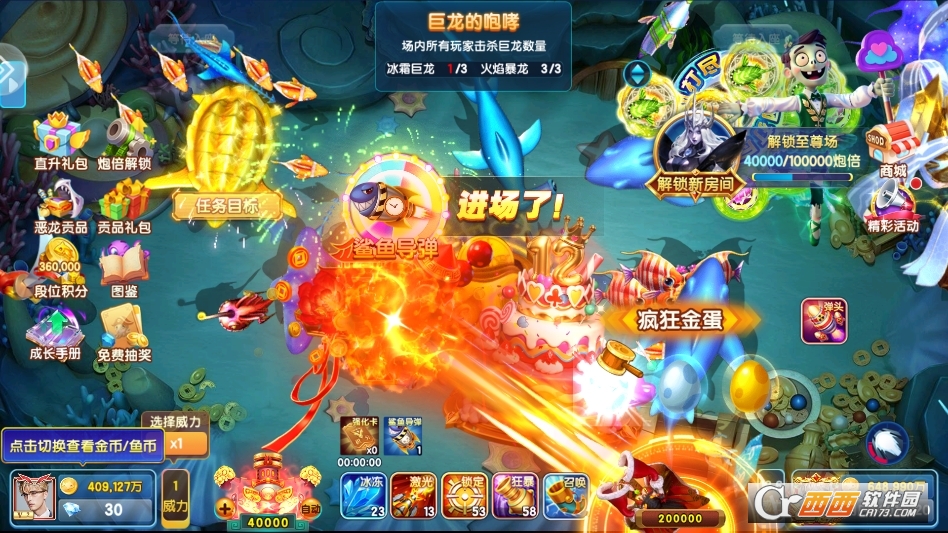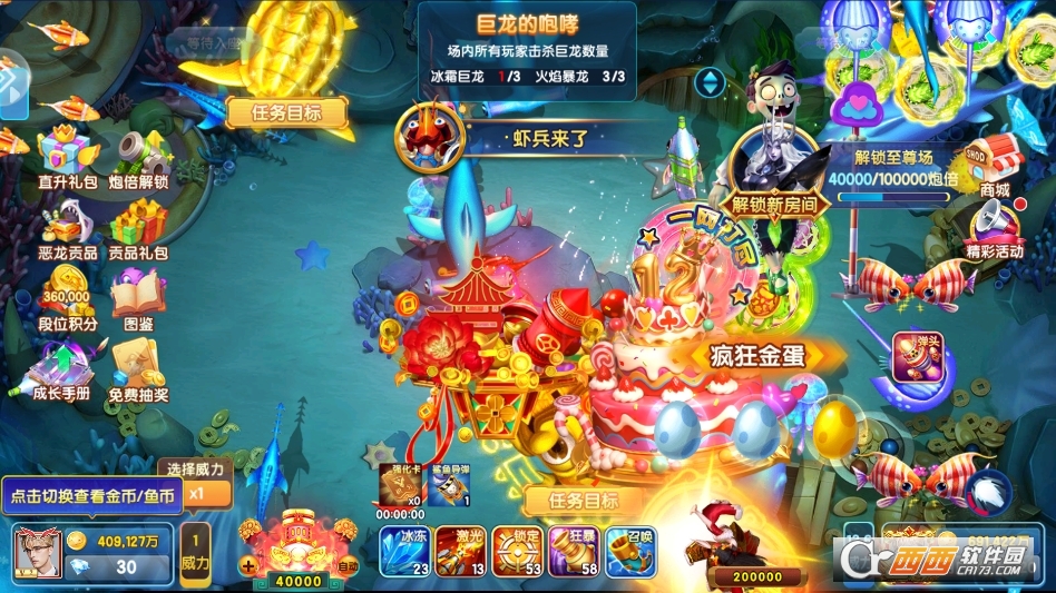其次,强力BOSS挑战极具特色,BOSS不仅外观炫酷、实力强悍,还具备专属技能与AI行为模式,并非简单的“高血量靶子”,玩家需结合炮台特性、鱼类规律与团队配合,才能成功征服,每一次击败BOSS都能获得满满的成就感,极大提升了游戏的挑战性与可玩性。
