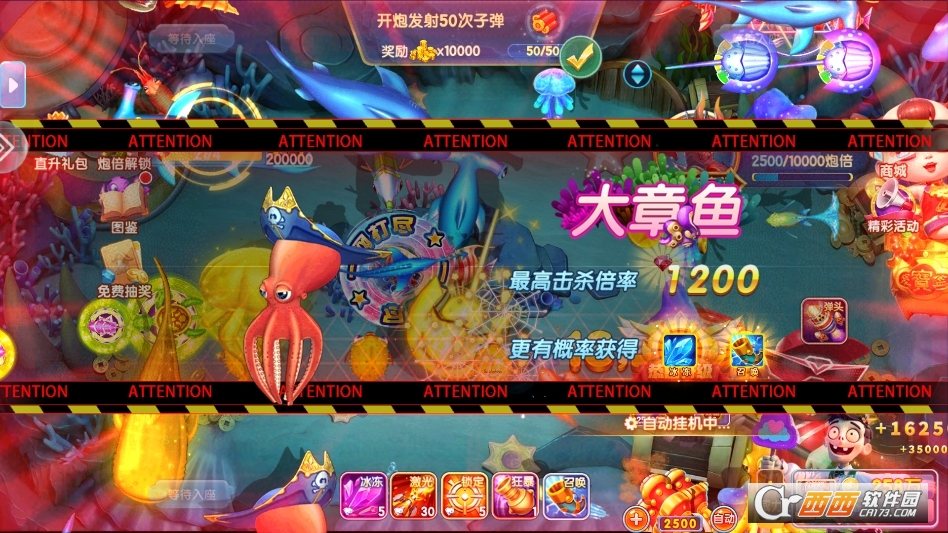 玩家可以自由选择不同难度副本冒险,搭配养成的强力神器炮台去各个渔场收割鱼群,策略性与爽感兼备。