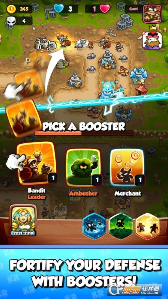 激斗王国保卫战联机版是一款非常经典的塔防游戏《王国保卫战》的新作。画质玩法全面升级,在这个版本里你可以与其他在线玩家匹配对决,核心玩法还是放置塔防,根据敌人的种类进行布置防御,漏掉怪物就会损失生命,先消灭所有敌人或者生命多的玩家将会获胜。更多怪物种类,更多特殊技能,为玩家带来不一样的塔防体验。
