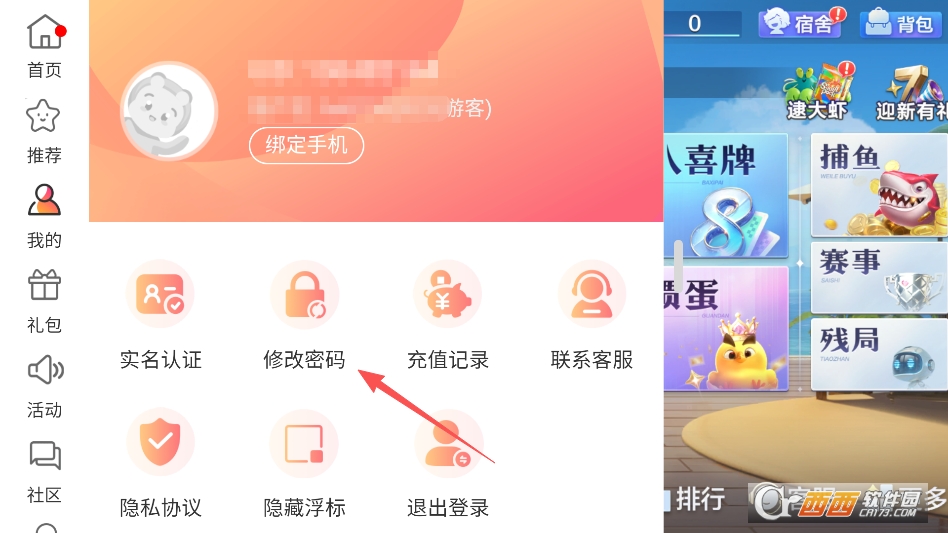 点击打开即可呼出菜单,点击修改密码选项就能修改密码了