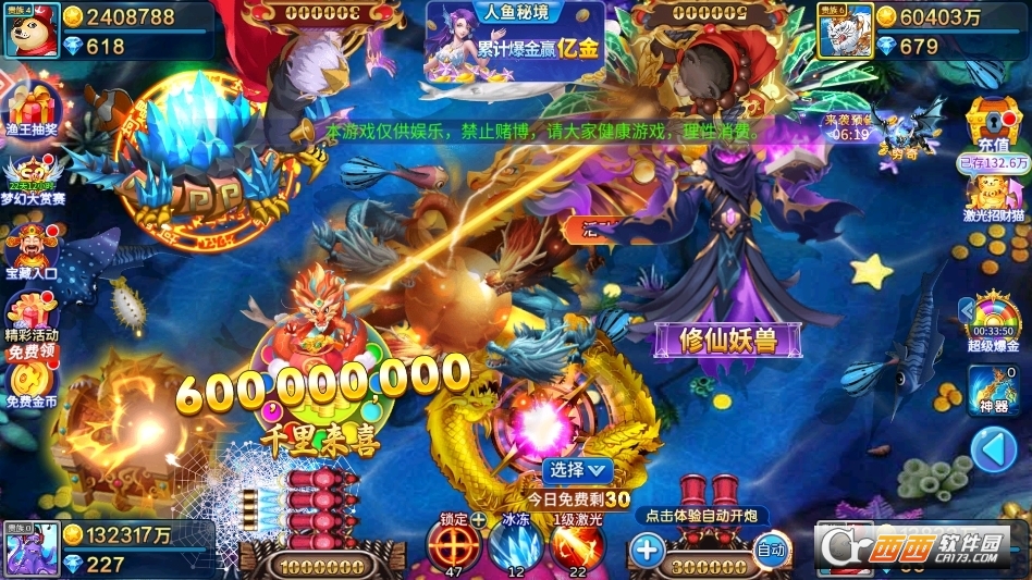 核心主打万人同屏联机、真人在线对战、玩家上庄PK等竞技玩法,实时匹配全国玩家,同台比拼捕鱼技术,复刻电玩城真人互动的热血体验,随时随地开启畅快捕鱼之旅。