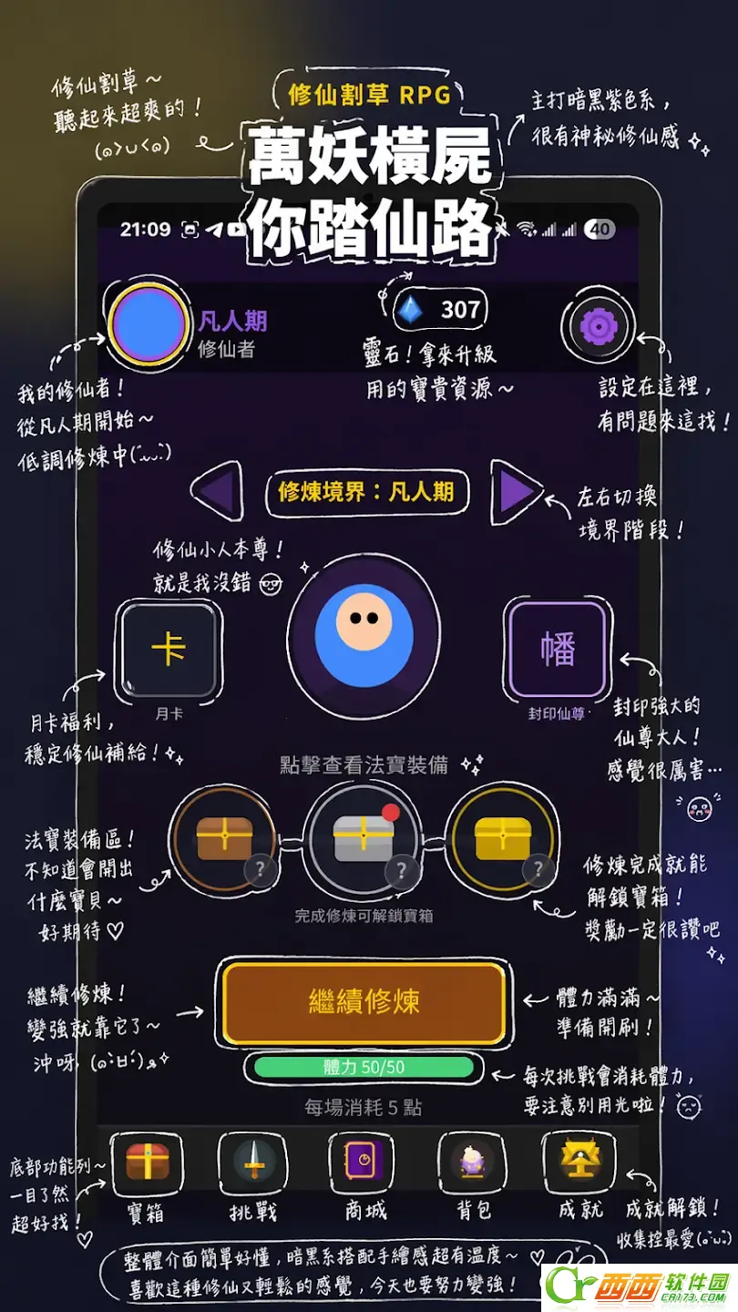 3、修仙之路从凡人期开始,需不断突破多个境界,每个境界有专属地图和独特敌人。