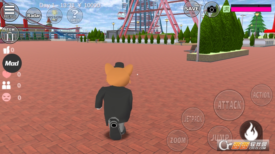 自由探索互动:无地图限制,可步行、驾车或使用喷气背包飞行,探索校园及小镇的每个角落,发现隐藏场景、道具与彩蛋。