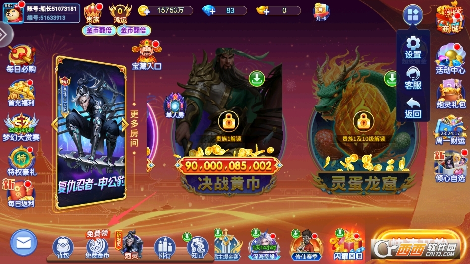 可以点击主界面下方的免费金币按钮