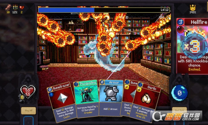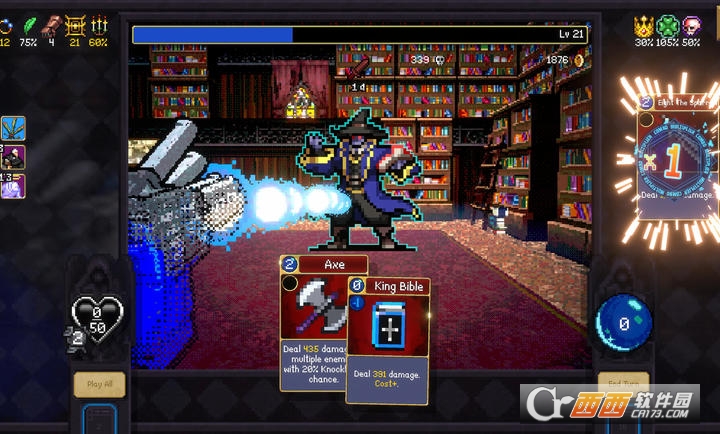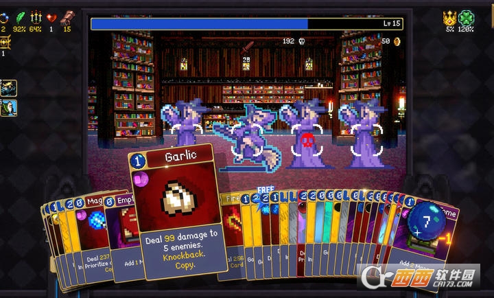 4.Roguelike随机机制:每一次冒险的地牢地图、敌人分布、卡牌与宝石掉落都是随机生成的,一旦失败需重新开始,但解锁的卡牌与宝石会永久保留,玩家可不断优化卡组,逐步提升实力,挑战更高难度的地牢与BOSS,同时游戏中还会随机出现诈灵、水鬼、红死神等特殊敌人,增加战斗的随机性与挑战性。