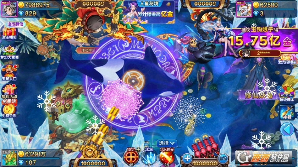 炮台自由升级与切换:提供多种威力不同的炮台,可通过金币解锁或升级,炮台倍数越高,炮弹威力越大、捕捉概率越高,适配不同场景与鱼种需求。