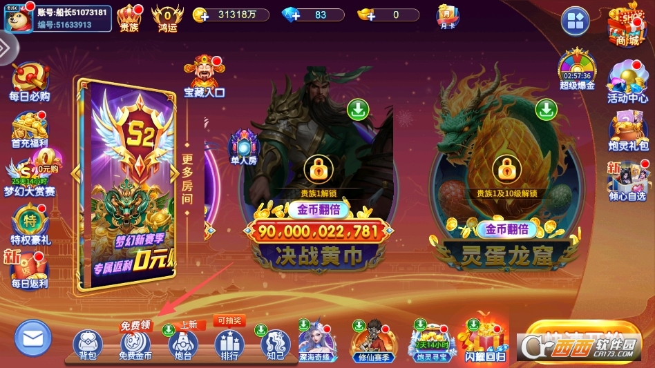 活动房玩法:限时开放的特色玩法模块,定期上线专属主题活动,如大奖赛、免费赛、快速赛、道具赛等,玩法规则多样,奖励丰厚。活动房内鱼群爆率提升,专属限定鱼种与BOSS限时出没,参与活动可获得抽奖券、大量金币、稀有道具等奖励,部分活动支持多人同屏竞技,玩家可同台比拼捕鱼技巧,赢取专属荣誉与福利。