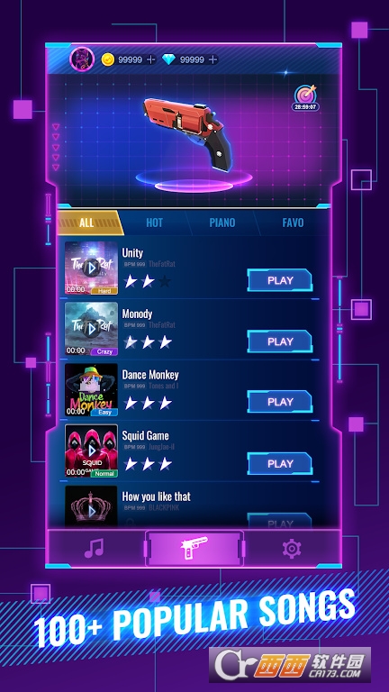 多样化武器系统:提供多种炫酷的3D枪支模型,每种武器的射击效果和音效都经过精心设计,与音乐完美融合,玩家可根据喜好和技巧选择。
