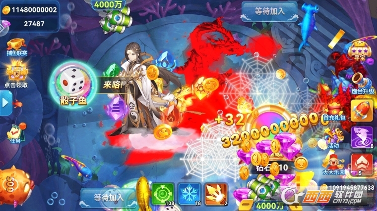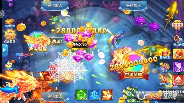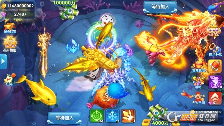 3、特效表现出色,2025版升级3D画面特效,鱼群游动时鳞片反光更真实,捕获BOSS鱼会触发全屏动画(如凤凰展翅、恶龙爆破),炮火特效与场景音效(如炮台轰鸣、宝箱开启声)完美搭配,相比旧版,沉浸感提升明显。