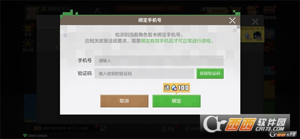 4、绑定手机号,绑定完成手机可获得100绑定钻石