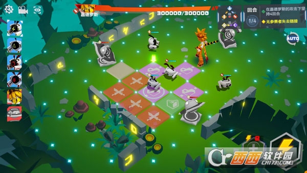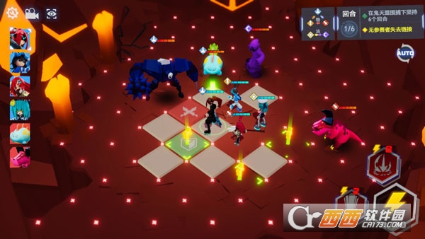 进入战斗模式后,左上角会显示参赛者和敌人的行动顺序,右下角是元力值和技能,右上角是关卡目标和剩余的战斗回合数。而整个战场会被分成若干个小地格,天使们需要指挥参赛者在这些地格间移动,排兵布阵,并在限定的回合内击败所有的敌人。