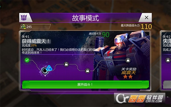 整款游戏会随着故事模式展开整个剧情。在每开始一个任务剧情时,玩家都可以看到此剧情通关所需的大致战斗力