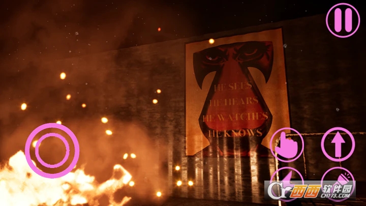 操作方式:左侧摇杆控制视角,右侧摇杆控制移动,手指点击按钮进行互动,如开门、捡道具等。