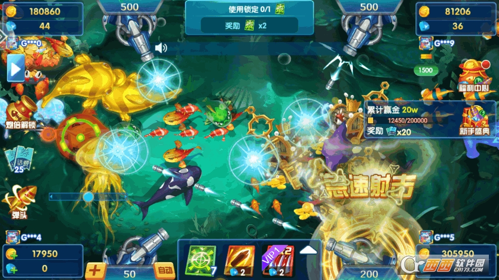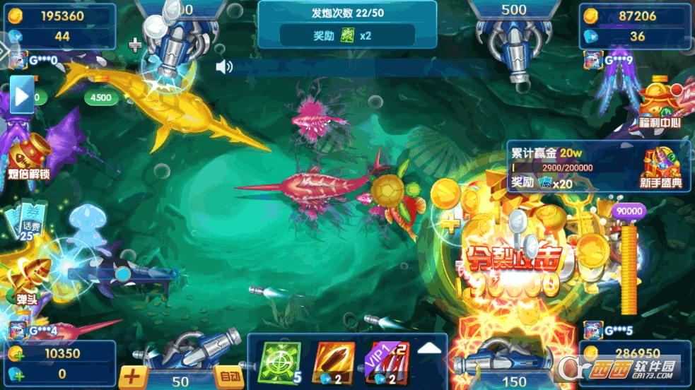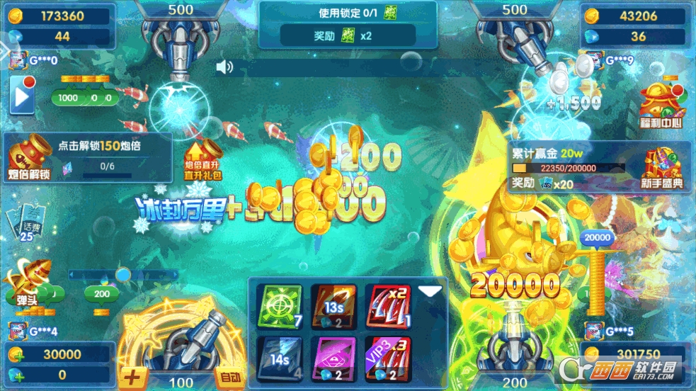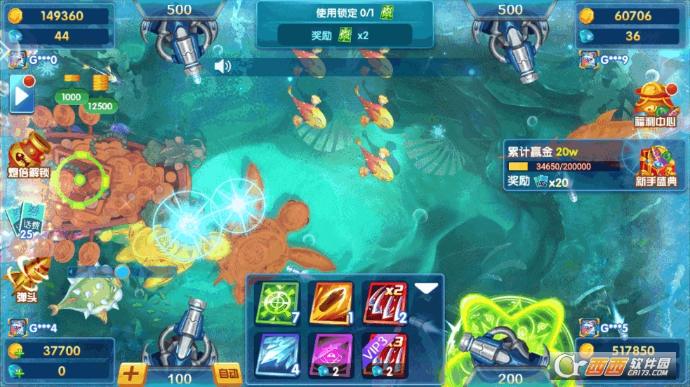 4.成长体系激发动力,打造了大炮升级、技能解锁的成长路径,玩家通过捕鱼收集金币就能升级大炮等级,解锁更强的火力和特殊技能,如范围捕捞、锁定目标等,让捕鱼效率更高,爆金更轻松。
