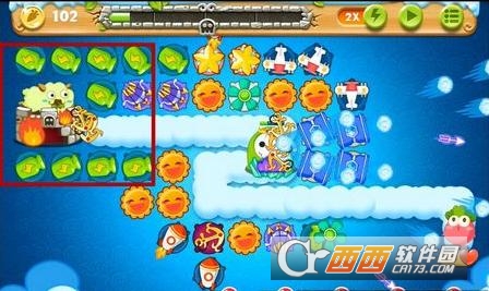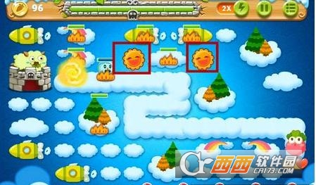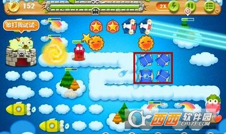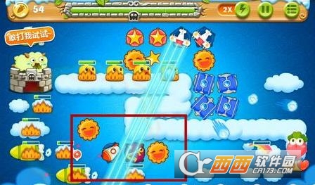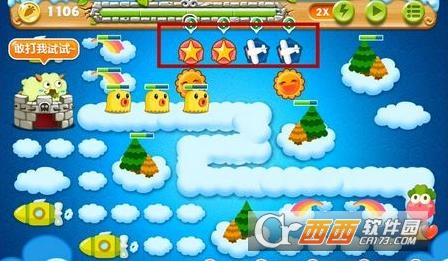2、打掉太阳旁边的道具获得2个炸弹星和2只玩具飞机,此时前期就基本没什么压力。