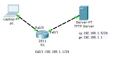 设备:1台 Laptop-PT,1台Server-PT ,1 台2811 路由器。