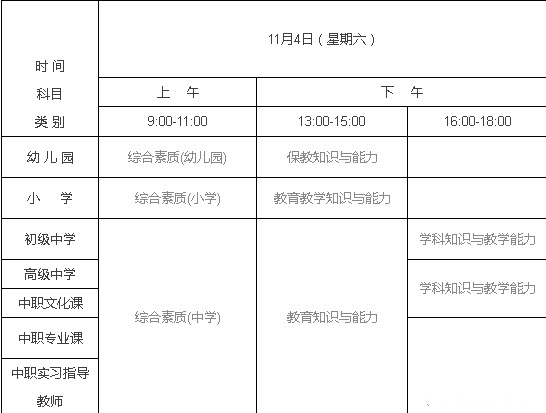 2017年下半年教师资格考试安排