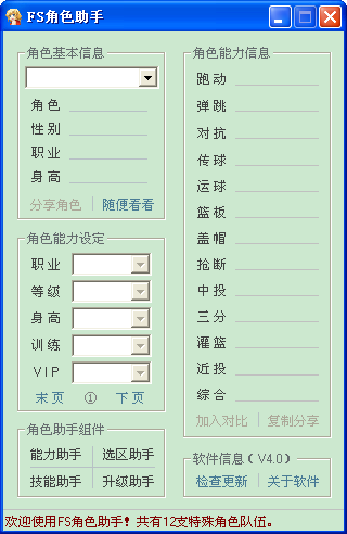 4、选区助手:可测试你的网络连接到服务器的效率,为你选区或者了解2.8街头篮球角色助手2012.10.03 → V2.5
