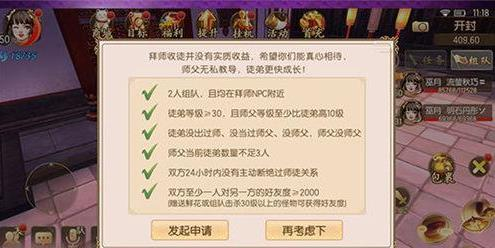 玩家等级只要到达30级左右,双方好友度只需达到2000点就可以拜师咯。