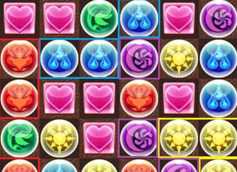 火珠子消除后,木珠子掉下来正好形成一列,也会随之消除形成combo;同理,光珠子消除后,水珠子掉下来形成combo。