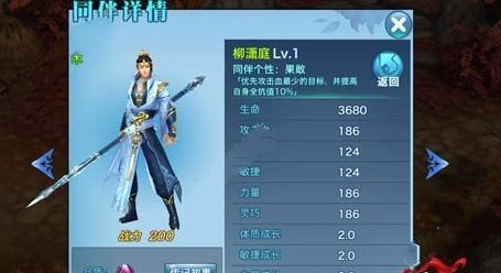剑侠情缘手游同伴柳潇庭怎么样,同伴柳潇庭技能属性适用门派介绍。剑侠情缘手游中的同伴玩法是比较好玩的一个玩法,玩家培养同伴,同伴协助玩家战斗,不同的同伴技能属性能力都是不同的,游戏中的同伴柳潇庭是个A级同伴,那剑侠情缘手游同伴柳潇庭怎么样呢,今天西西小编就来为大家介绍同伴柳潇庭技能属性适用门派。