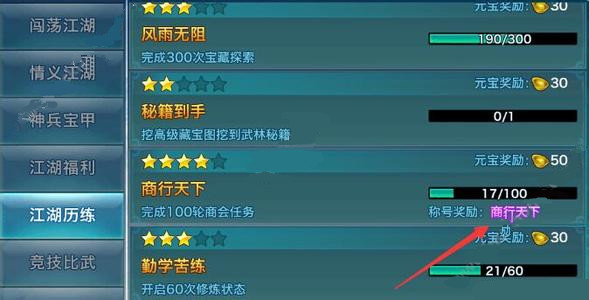 侠情缘手游商行天下称号剑侠情缘手游商行天下称号获取: 完成100轮商会任务即可获得该称号!