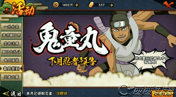 火影忍者手游七月签到次郎坊早已领取完毕, 八月的签到宠物也已开放预告,那就是鬼童丸。火影忍者手游八月签到忍者鬼童丸厉不厉害,鬼童丸有些什么技能,下面就一起和西西来看看吧!