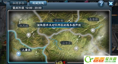 需要注意的是,虽然大地图暂时分为5大块。但是您当前能攻打的版块,是由官方决定的。举个例子(只具说明作用,不代表实际)1-10服只能攻打上庸关,而不能攻打其他版块。