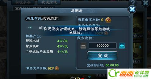 跨服帮战的玩法比较复杂,帮派的帮主需要仔细斟酌局势,有时甚至需要有一定的“外交手段”。否则,当您占据了类似于成都这种战略要道时,您面对可能会有4个其他帮派的对手。哪怕您手握3级城池的土地权,一旦被攻下,又没有其他的城池在手。大侠便只有重整旗鼓,从1级城池慢慢收复失地。由于考虑到该玩法的复杂度,我们也在游戏的帮助界面中对此玩法做了非常详细的说明。请一定要参考。