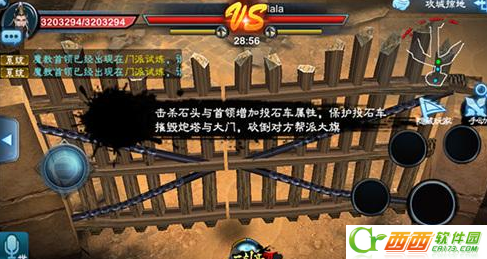 投石车会分三路刷新(若数量不足会优先刷新在中路),每45S刷新一波,它们具有强大的攻击力,以及很高的生存耐力,是推塔、推城门的主要战力。而且,击杀地图内的小怪、BOSS都能够提高投石车的属性。在敌方城门被摧毁后,投石车会自动消失,帮派大旗只能由玩家摧毁!