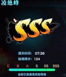 目前,凌绝峰分六个评级,C、B、A、S、SS、SSS,BC级就不说了,至今没打出来过,A级评分为90分,S级为100分,SS级为110分,SSS级为120分~