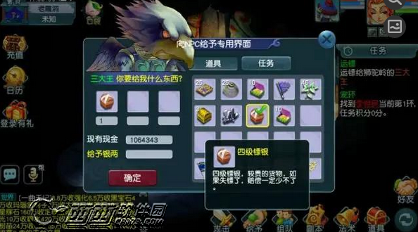做完了每天必做的20个师门任务,又来到了镖局,操作一样非常简单快捷。额~~我只是想跑个近点的帮少侠们截个图而已,竟然要跑去找三大王!跑吧~交镖的操作也不难,少侠们不要吐槽小美背包里的东西哦~