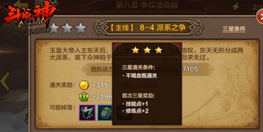 通关之后系统就会给我们发放奖励,在关卡中可以直接获得首胜的金币与经验奖励,这个与三星没有关系,只要是首次通关都可以获得。如果我们三星通关,离开关卡之后系统就会提示我们已经获得三星奖励的技能点和修炼点,有了修炼点之后,我们再去修炼界面提升属性的等级即可。