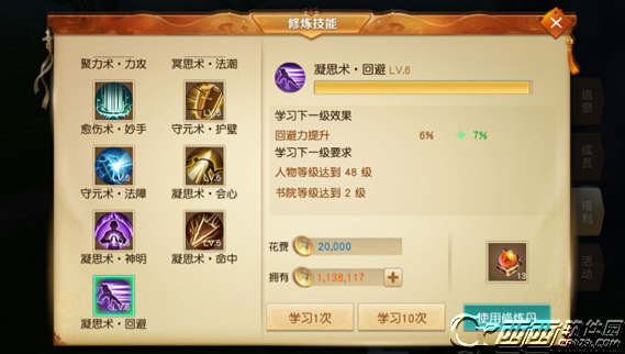 如果还有剩余的修炼丹我建议修炼凝思术·命中或者凝思术·回避。增加命中力原因不用我多说,只有技能命中目标,伤害才能达到。