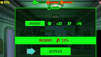 类似发电室、供水室、餐厅等设施都可以加速其生产,点击“rush”按钮然后点击“激活”按钮即可加快生产。