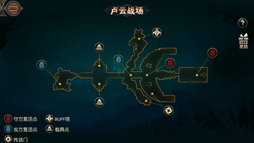 卢云战场是小型城战,玩家可通过竞技进行匹配同等级段的玩家。当匹配满20个同等级段的玩家后,将开启卢云战场。进入战场后,玩家将分成黎明和黄昏两个阵营,轮流扮演攻方和守方进行对抗。正常战斗将分两回合进行,每个回合最长10分钟时间。