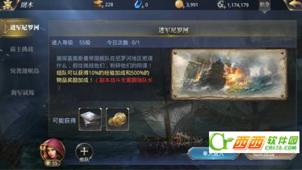 进军尼罗河的任务看起来就跟北非舰队的玩法差不多,不过其游戏难度可想而知。当玩家达到55级之后才能够进行参与活动,在每个小关卡中,游戏都会给出相应的过关要求,随着关卡的难度加深而持续增加。虽然游戏说可以进行单人或者3-5人组队,但是个人推荐