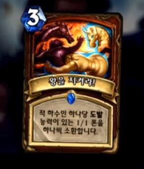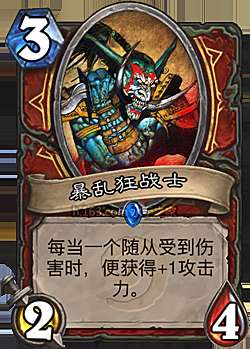 而这张卡使用起来比较灵活,快攻的战士配合这张卡也有会有不错的combo,例如在别人场上有很多随从的时候,你可以打出暴怒的狂战士+保护国王。如果别人没有解场的卡的话,你就可以让你的狂战士迅速叠加攻击力。