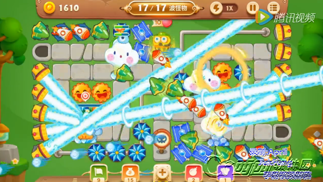 说实话,看到这样的开局西西有点害怕,真不知能不能撑过去,姑且每种炮塔都先种一个。先打右屏幕中间的树林。