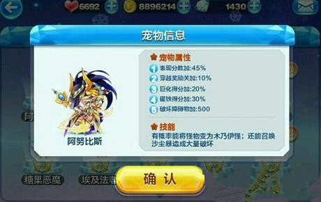 而阿努比斯这款超神宠则相反,这款超神宠不适合在超级奖励中释放技能,因为超级奖励中没有怪物,也没有障碍物,技能就无效辣。