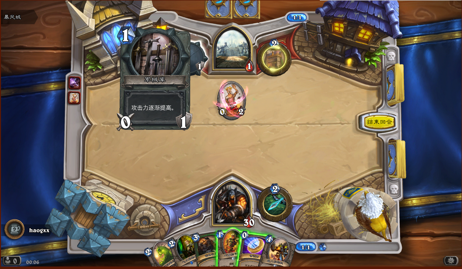 5战吼将一个暴风城的攻击加到他的攻击和生命上;