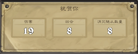 3、最后会统计你对boss的输出、回合数以及消灭随从数量。