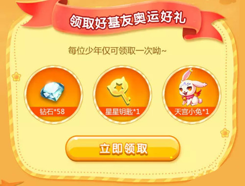 1).登陆游戏并成功邀请一位小伙伴可领取一次抽奖机会