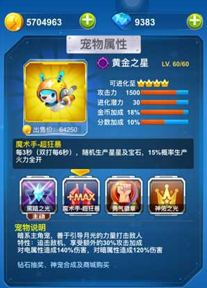魔术手超狂暴: 每6秒(双打每12秒),随机生产星星及宝石,15%概率生产火力全开。